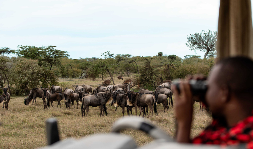 Experience the stunning Great Migration up close with front-row views of wildebeests' majestic journey through Serengeti and Maasai Mara.
