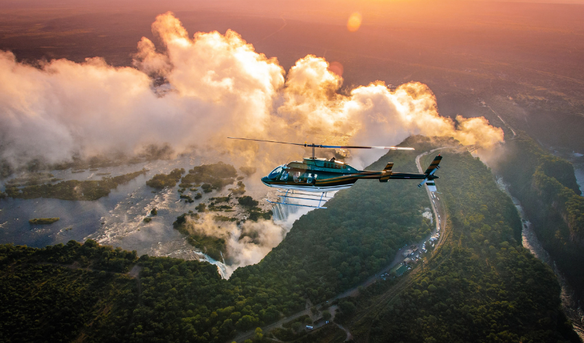 Fly above the wild wonders of mighty Victoria Falls, in a private helicopter tour.